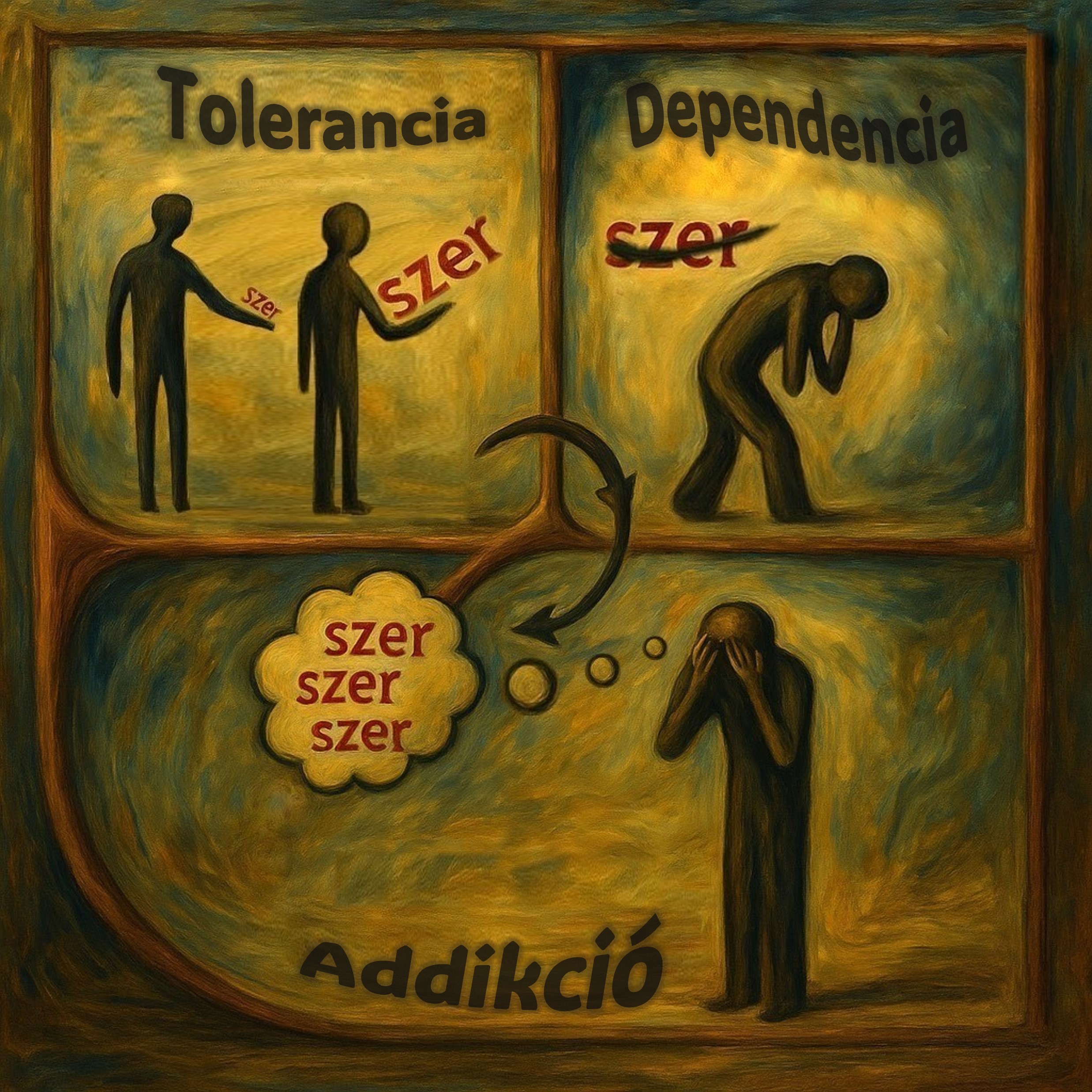 - Elvonási tünetek jelentkeznek a szerhasználat felfüggesztése után.